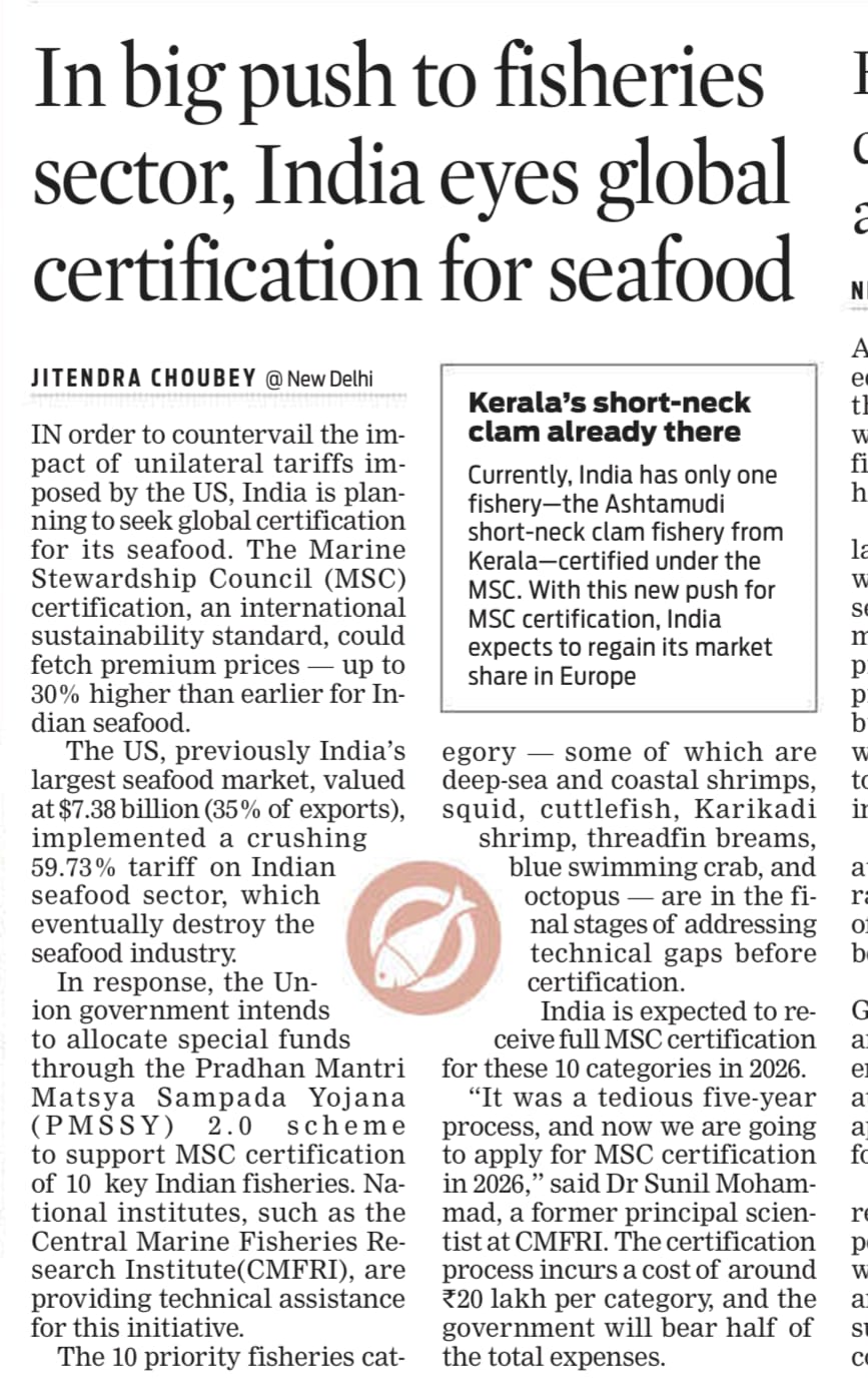 India eyes global certification for seafood